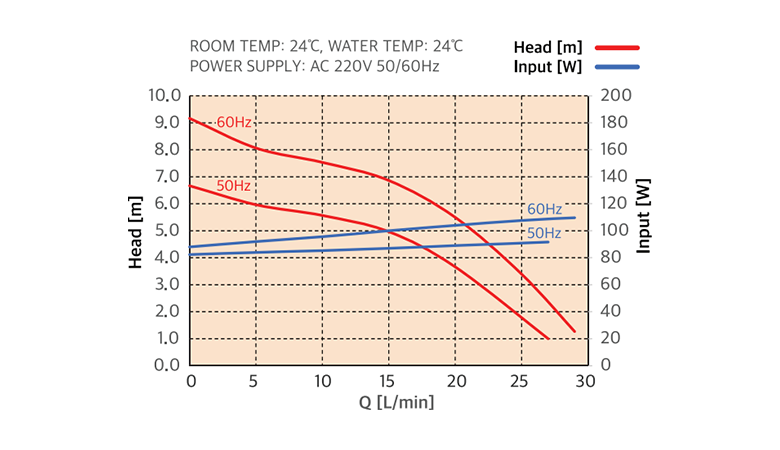 | Rated Head [m], (at 10L/min) | 5.6 (18.4ft) / 7.5 (24.6ft) | |||