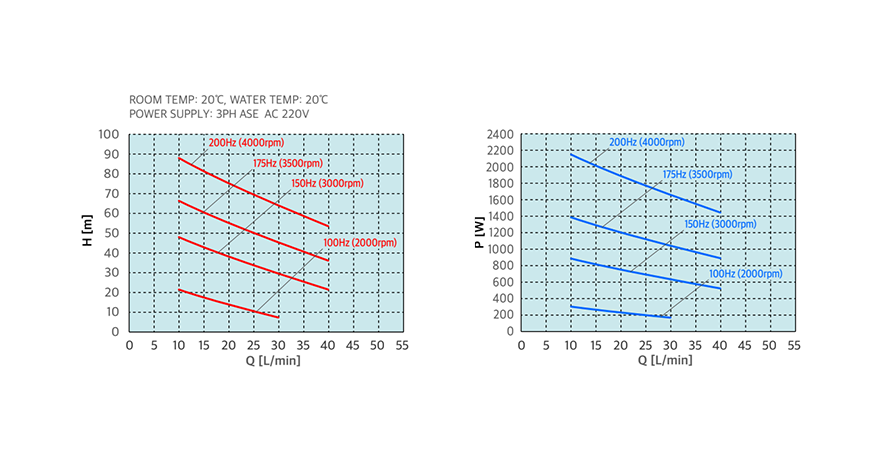 성능 곡선은 외부 온도가 20℃일 때 동일한 온도인 20℃의 물을 사용하여 측정했습니다.